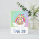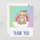 An adorable drawing of a brown sloth meditating, floating on a cloud with a rainbow behind. Text says thank you, on the front and your personalised message on the back.