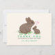 Thank your guests for their thoughtful gifts with these adorable, hand-painted mama and baby cottontail bunny rabbits sitting in a patch of clover while emitting floating pink hearts between them! The words "Thank You" and your custom name are in green text to match the clover patch. On the back of the card is a cute pink heart pattern. Shown here with an ivory coloured background which you can easily change to your favourite colour.