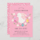 Pretty floral easter dinner & egg hunt invitation featuring a cute bunny rabbit framed with a floral wreath and dyed easter eggs set on a pink background with a coordinating white dot back.
