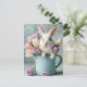 Adorable Bunny Peeking from a Pitcher of Tulips Holiday Postcard