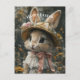 Adorable Bunny Straw Hat Flowers Lace Postcard