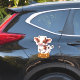 This large sticker features an endearing, cartoon-style calf designed for a nursery setting. The calf has a cute and gentle expression with big, expressive eyes. Its body is white with brown patches, and it has a pink nose and small black horns. The calf stands on all fours with a slight tilt to its head, adding to its charm. Below the calf, the word "CALF" is written in playful, rounded letters, enhancing the sticker's suitability for a child's room.