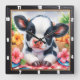 This heartwarming square wall clock features an adorable black and white calf, resting sweetly on a red and white chequered blanket. Surrounded by vibrant pink and orange tropical flowers and baskets of pineapples, this charming design brings a delightful, cheerful farm-to-table aesthetic to any home decor.