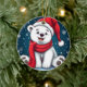 Adorable Cartoon Polar Bear in Santa Hat Ceramic Ornament