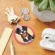 Charming illustration of a cute cartoon puppy, sitting on a vibrant circular background. Perfect for children's illustrations, pet themes, and cheerful designs.