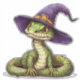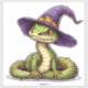 An artistically drawn snake with a detailed body, wearing a whimsical purple witch hat, radiating a captivating combination of charm, fantasy, and magical illustration artistry.
