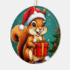 cheerful squirrel dressed in a Santa hat, holding a wrapped present. Perfect for seasonal greetings, Christmas themes, and festive decor designs.