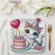 Adorable Cat Celebrating Birthday with Cake Paper Plate