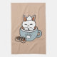 Adorable Cat in Mug Holiday Design - Cat & Cocoa Tea Towel