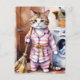 Adorable Cat in Pyjamas Doing Laundry Funny Postcard