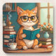 Adorable Cat Wearing Glasses Reading a Book Coaster