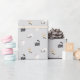 This design features a repeating pattern of cute cartoon cats. Product is shown with a grey background. Click "Customise It" to select a different background colour.