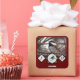 The focus point of the design is an adorable chestnut backed chickadee with a 8 point starburst with initials on either side that can be customised to your own monogram. The image above the crest of the tiny bird on a twig, however it can be changed your own image, photo, or selfie. The text field below is for your name or a friend's.