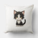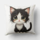 Adorable chibi kitten with fluffy black‑and‑white cushion