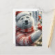 Adorable Christmas Polar Bear and Cardinal Bird Postcard