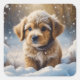 Adorable Christmas Puppy on a Snowy Night Square Sticker