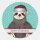 Adorable Christmas Sloth Teal Name Kids Animal Classic Round Sticker