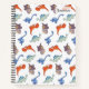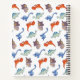 This full size spiral notebook can be personalised and customised with your name or text on the cover and your choice of several page designs inside. Works well as a journal, diary, planner, notebook, or sketch pad for all kinds of writing, thoughts, doodles, sketches, lists, drawings, notes, and more. Great for home, school, work, or just for fun. This design features an array of cute colourful cartoon dinosaurs in orange blue and purple colours.
