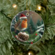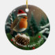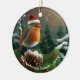 Adorable custom robin over a snow-covered tree ceramic ornament