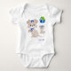 Add a cute touch to your little one's clothing with this adorable puppy baby bodysuit. Bodysuit features a mummy dog with a baby puppy. Both dogs are wearing blue bows and the mum dog is wearing a collar. There's also a dog house in the background and a dog paw print. Customise the bodysuit with your little girl or boy's first name. Design is also available as an infant shirt.