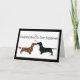 Whimsical painted dachshunds sharing a smooch decorates the front of this cute engagement card, with congratulations greetings. Very sweet card.