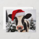 Adorable Dairy Cow in a Santa Hat Postcard
