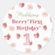 Adorable Daisy Pastel Berry First Birthday Girl Classic Round Sticker