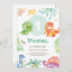 Roar into excitement with our Dino Themed Birthday Invitation! Featuring adorable baby dinos and soft green hues, this editable invitation sets the stage for a prehistoric party. Customise the age to fit your little one's milestone and prepare for a dino-mite celebration!