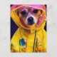 All rights reserved © Angelandspot an adorable dog wearing glasses and a yellow raincoat