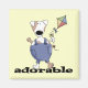 An adorable white and brown spotted dog with a chubby belly wearing denim overalls flies a kite and black text reads "Adorable" on Adorable Dog T-shirts, hoodies, bodysuits, hats, mugs, cards, stickers, keychains, and more.