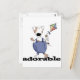 An adorable white and brown spotted dog with a chubby belly wearing denim overalls flies a kite and black text reads "Adorable" on Adorable Dog T-shirts, hoodies, bodysuits, hats, mugs, cards, stickers, keychains, and more.