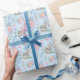 Adorable Easter Bunny Spring Pastel Flower Blue Wrapping Paper