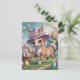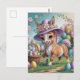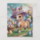 An adorable Easter Pinto donkey foal in a fancy Easter hat with a basket of colourful Easter eggs