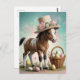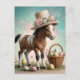 An adorable Easter foal in a fancy Easter hat with a basket of colourful Easter eggs