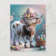 All rights reserved © Angelandspot AI generated adorable Highland cow in a fancy Easter hat posing next to a basket of Easter eggs