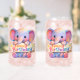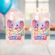 Make every birthday toast extra sweet with this adorable elephant frosted can glass set the design features a charming Rosie cheeked baby elephant with colourful pastel ears holding a festive happy birthday banner adorned with tiny stars. These trendy can shaped glasses are shown filled with a refreshing pink drink over crushed ice highlighting the soft whimsical art style. They are the perfect choice for children children's parties, baby showers or as a thoughtful gift