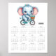 Adorable Elephant on a Bicycle 2025 Wall Calendar Poster