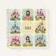 This personalised girls' notebook features fairy tale-themed doodles of adorable sketched princesses and castles! Each design showcases a whimsical, playful style with soft and cheerful details. The drawings are set against pastel backgrounds like soft mint green, baby pink, powder blue, and pale yellow.