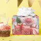 Sweet adorable pink piggies in the snow with wrapped gifts and santa hats for Christmas, - perfect for farm Christmas gift wrap