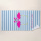 Adorable Flamingos in Love On Stripes-Personalised Beach Towel
