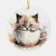 ADORABLE FLUFFY KITTEN IN A TEACUP CERAMIC ORNAMENT