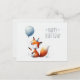 Celebrate a special day with this charming birthday card featuring an adorable fox holding a blue balloon and wearing a party hat. Perfect for anyone who loves cute animals and whimsical designs. This delightful card is sure to bring a smile to the birthday person's face and make their day even more special.