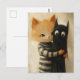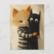 Adorable ginger cat and a black kitty ghost postcard