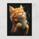 An adorable cute happy happy ginger cat with a mug of coffee fantasy art