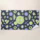 Adorable Green Aliens Space Ships UFO Kids pattern with planets, spaceships, and little green alien astronauts Beach towel.