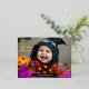 Celebrate this Halloween with an adorable baby Halloween photo card, featuring a smiling baby in a cute pumpkin-themed costume, perfect for sending out festive party invitations. The little one is dressed in an orange pumpkin outfit with a spooky witch hat adorned with skulls, set against a backdrop of glowing pumpkins. The playful message “Join us for a fang-tastic celebration” adds charm and makes this card ideal for baby announcements, Halloween invites, or fall-themed greetings. Perfect for families, friends, or anyone looking to add a touch of cuteness and Halloween spirit to their celebrations. This photo card captures the fun and joy of the spooky season!