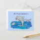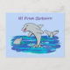 Adorable happy dolphins cartoon illustration postcard