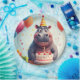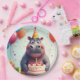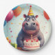 Adorable Hippo Celebrating Birthday with Cake Paper Plate