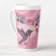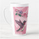 Personalise this Beautiful "One of a Kind" Latte Mug! It Features an Adorable Hummingbird Sipping Nectar from Beautiful Pink & Purple Flowers on a Pink Swirl Background!