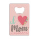 An adorable "I love mum" credit card bottle opener, this item features "I love Mum" clipart decoration on a pink background. Pretty and chic, order yours today!